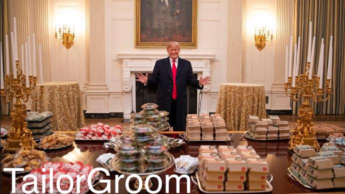Trump invites Clemson Tigers to the White House for some grub. Once the players arrived they were ushered into the White House dining hall, where they were treated to a hefty selection of bubble gut producing fast food.