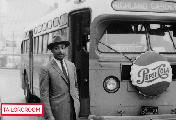 Pepsi-cola is an example of how corporate America profited from their sponsorship of oppression during the civil rights movement. In the dated picture Martin Luther King stands in front of  A bus which bears a poster advertisement for Pepsi-Cola. During this time  blacks were not permitted to sit in the front of the bus. But despite this fact Pepsi-Cola and companies like it continue to patronize local and state and federal institutions which out right discriminated against blacks. The photo is a perfect metaphor  which encapsulates that discrimination is not simply a matter of rights and privileges rather a matter of  dollars and cents. Companies do what is in the best interest of their corporate profit. Corporations, as legal nonliving entities , are therefor citizens and should be held to the same common societal standard of common decency.