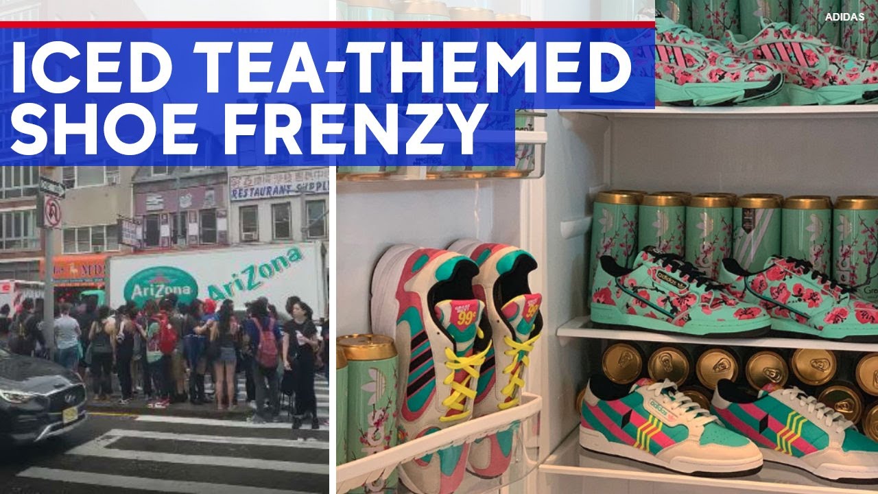 Arizona Iced Tea themed Adidas sneakers, NYC release stirred such a frenzy the NYPD was called to quell the riotous fashion fiends.