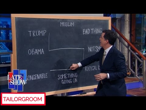 Stephen Colbert cleverly exposes how  Goofball Donald Trump tries to  disguise his hate rhetoric as that  of   legitimate  concern.