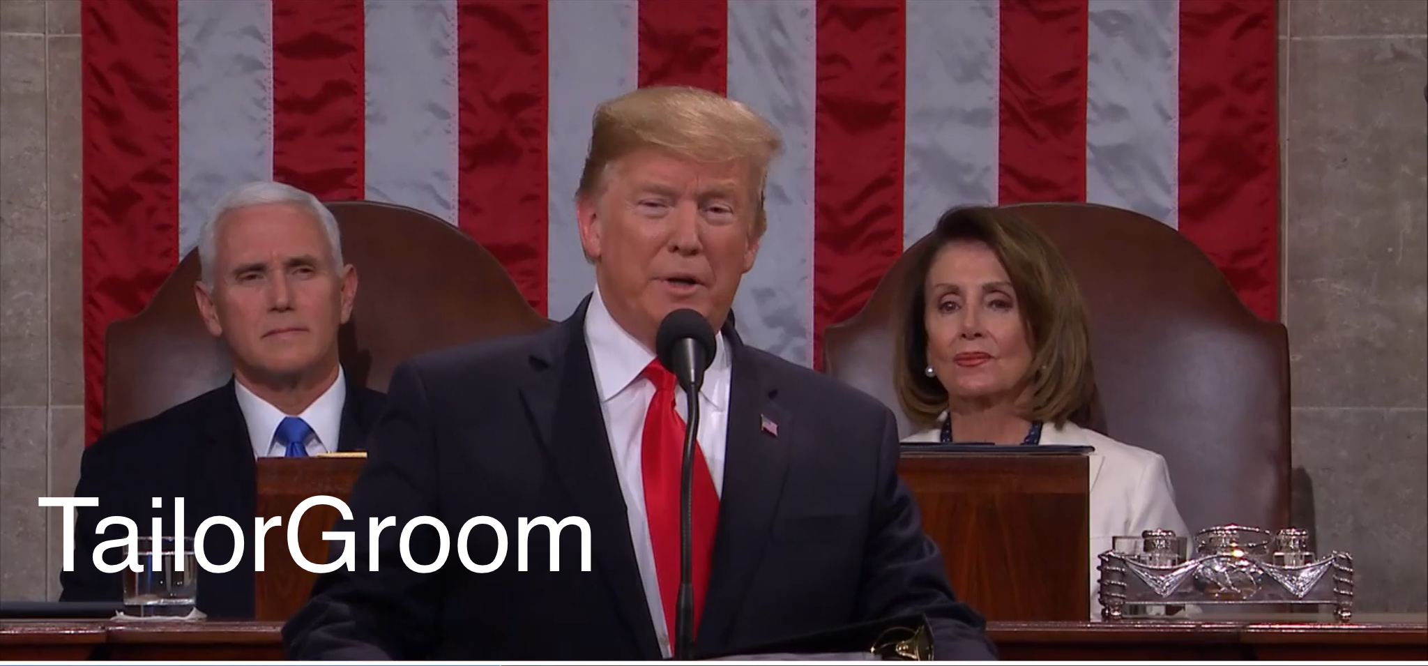 Throughout the entire duration of his State of the Union speech Trump wore what has become his signature red necktie. Apparently that necktie had its own agenda. It was crooked. More than crooked Hillary . Unfortunately, Trump is encircled by a group of people who obviously have little regadrd for him, otherwise , someone from his team would have informed him that his necktie looked utterly ridiculous.